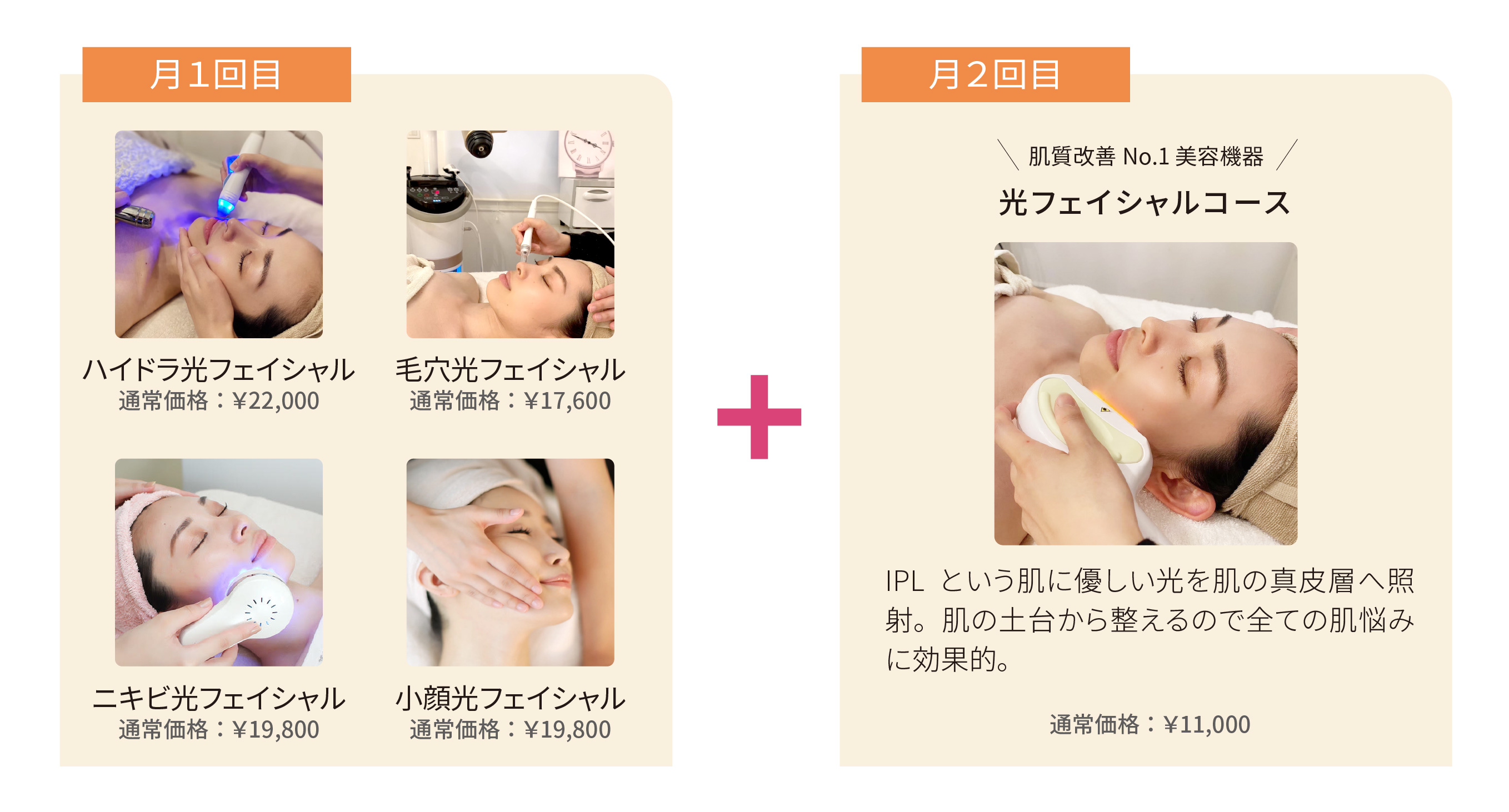 tottoでは主に光フェイシャルをメインとしたコースメニューになっております。